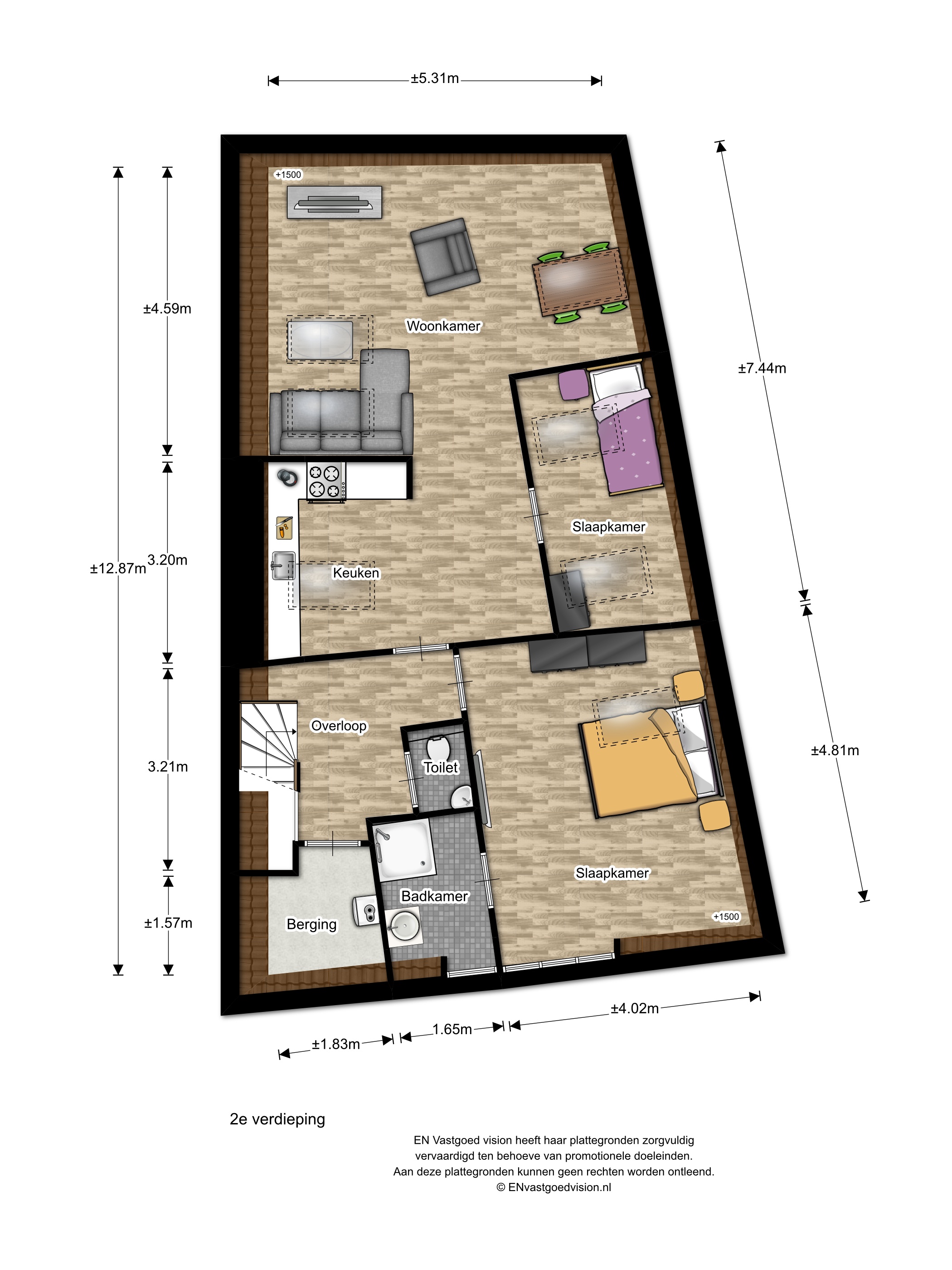 slaap-/hobbykamer, wandafwerking vezelbehang, vloer afgewerkt met vinyl, plafond afgewerkt met spuitwerk;