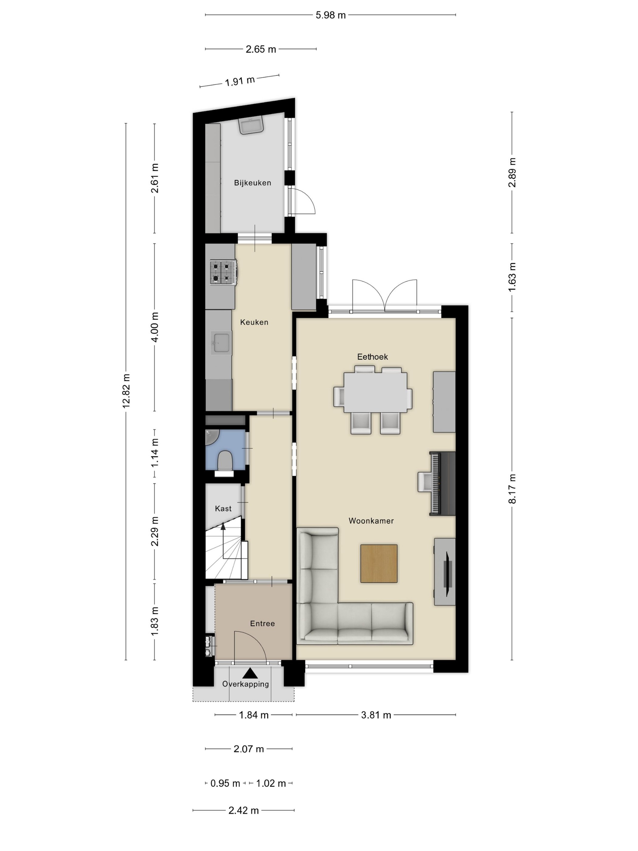 – comfortabele bijkeuken met kastenwand vv. moderne CW5 HR-combiketel;