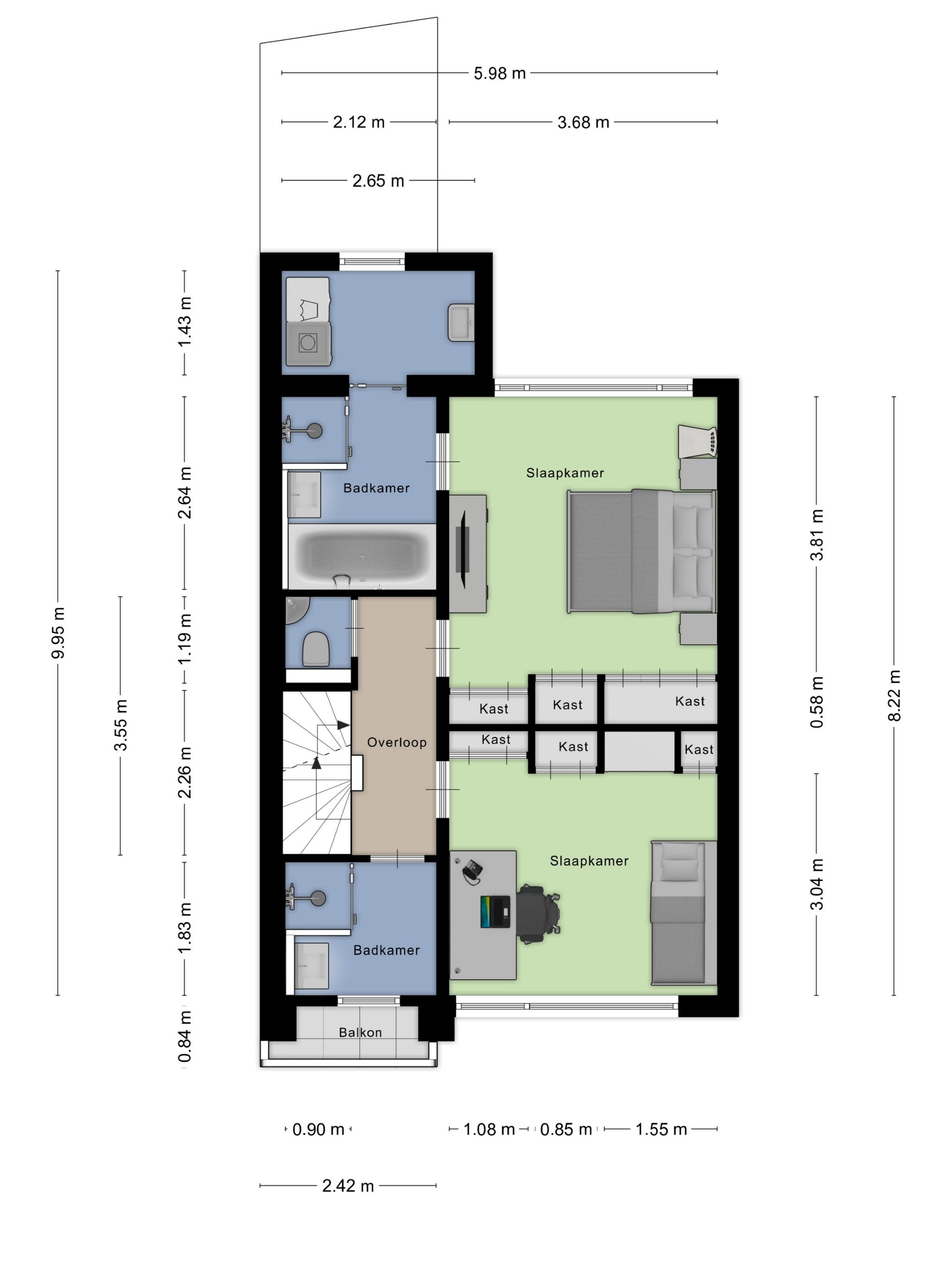 – 2 keurige badkamers waarvan de hoofdbadkamer (met ligbad en inbouw TV) direct aan de
