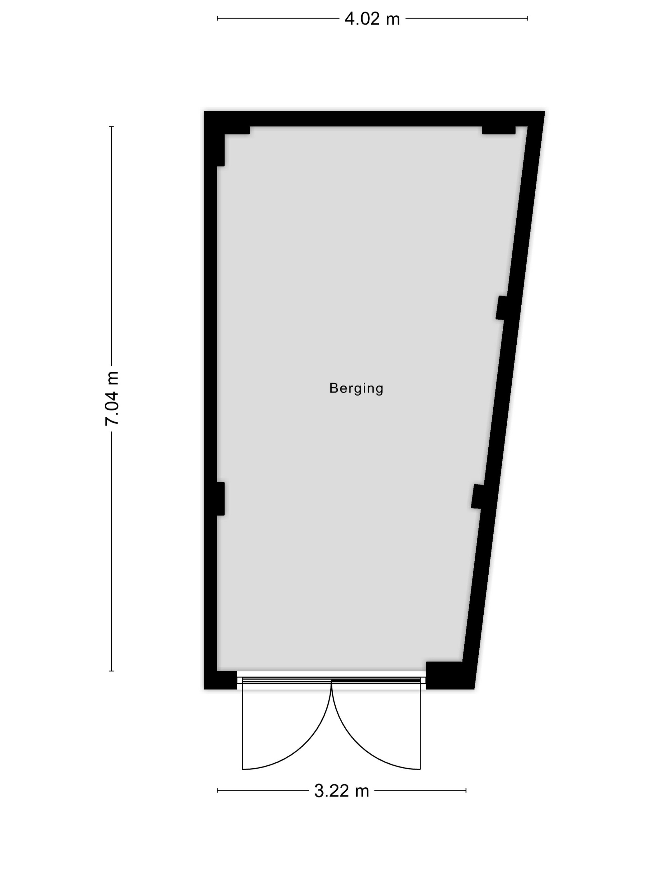 Schuur in de achtertuin (ca. 25 m²) als bereikbaar via de achtertuin en gesitueerd in een gezamenlijk gebouw met de buren links.