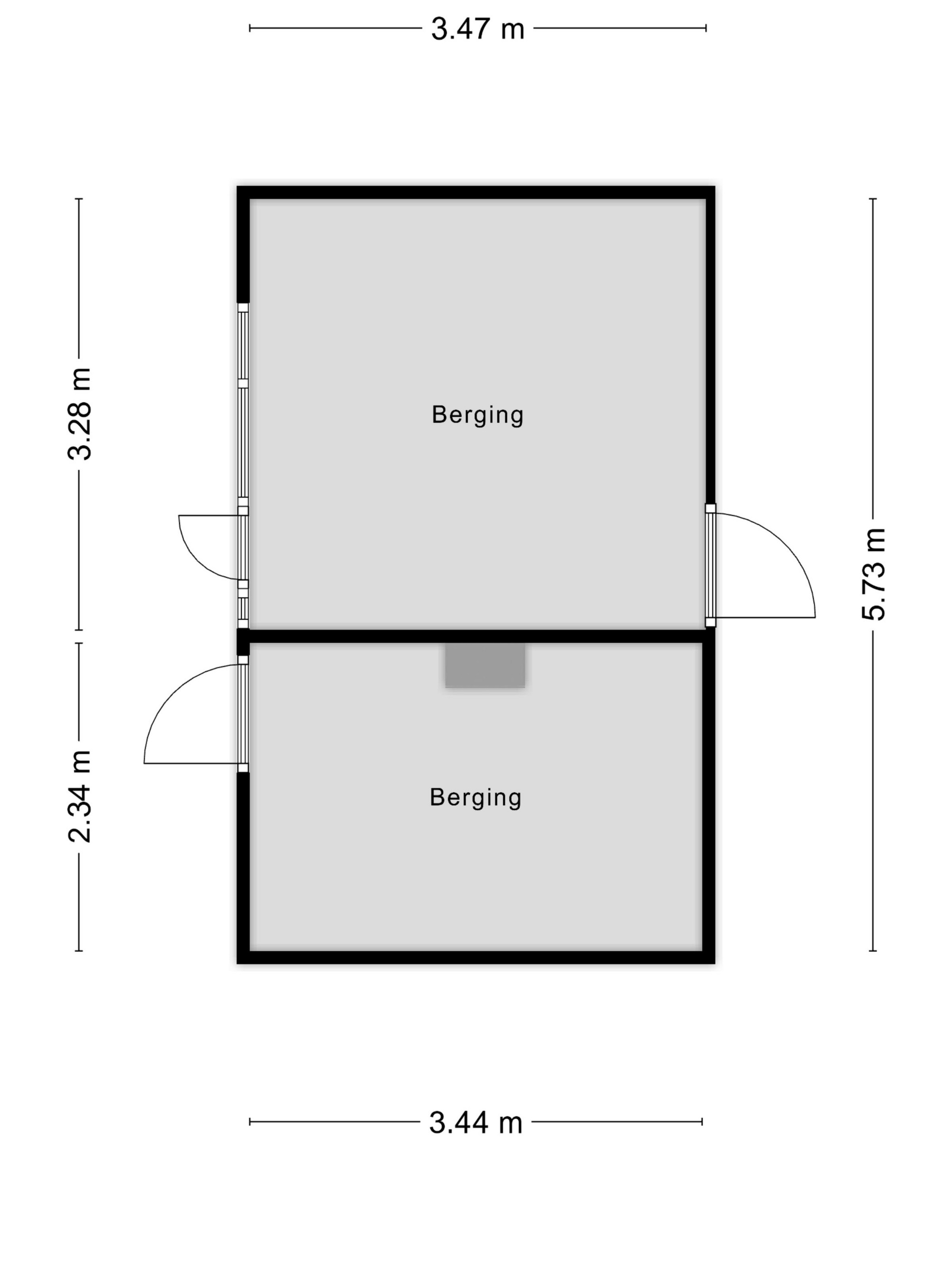 Traditioneel gebouwd in halfsteensmetselwerk, betonvloer, platdakconstructie gedekt met bitumineuze dakbedekking.