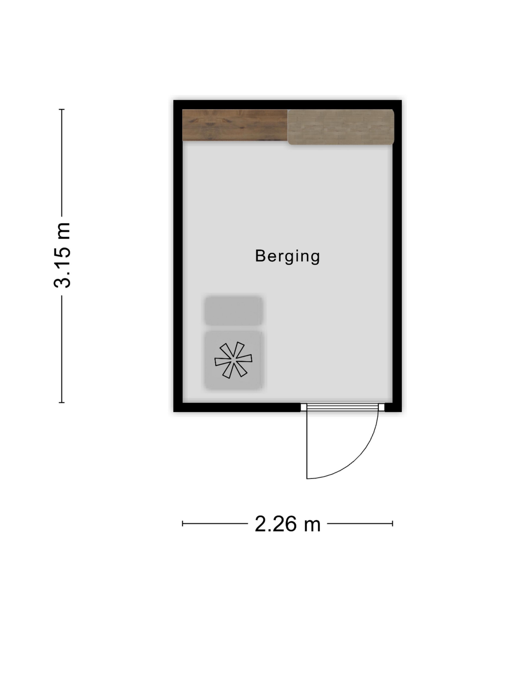 (fietsen)berging, opgetrokken in hout, vv. betontegelvloer en elektra.