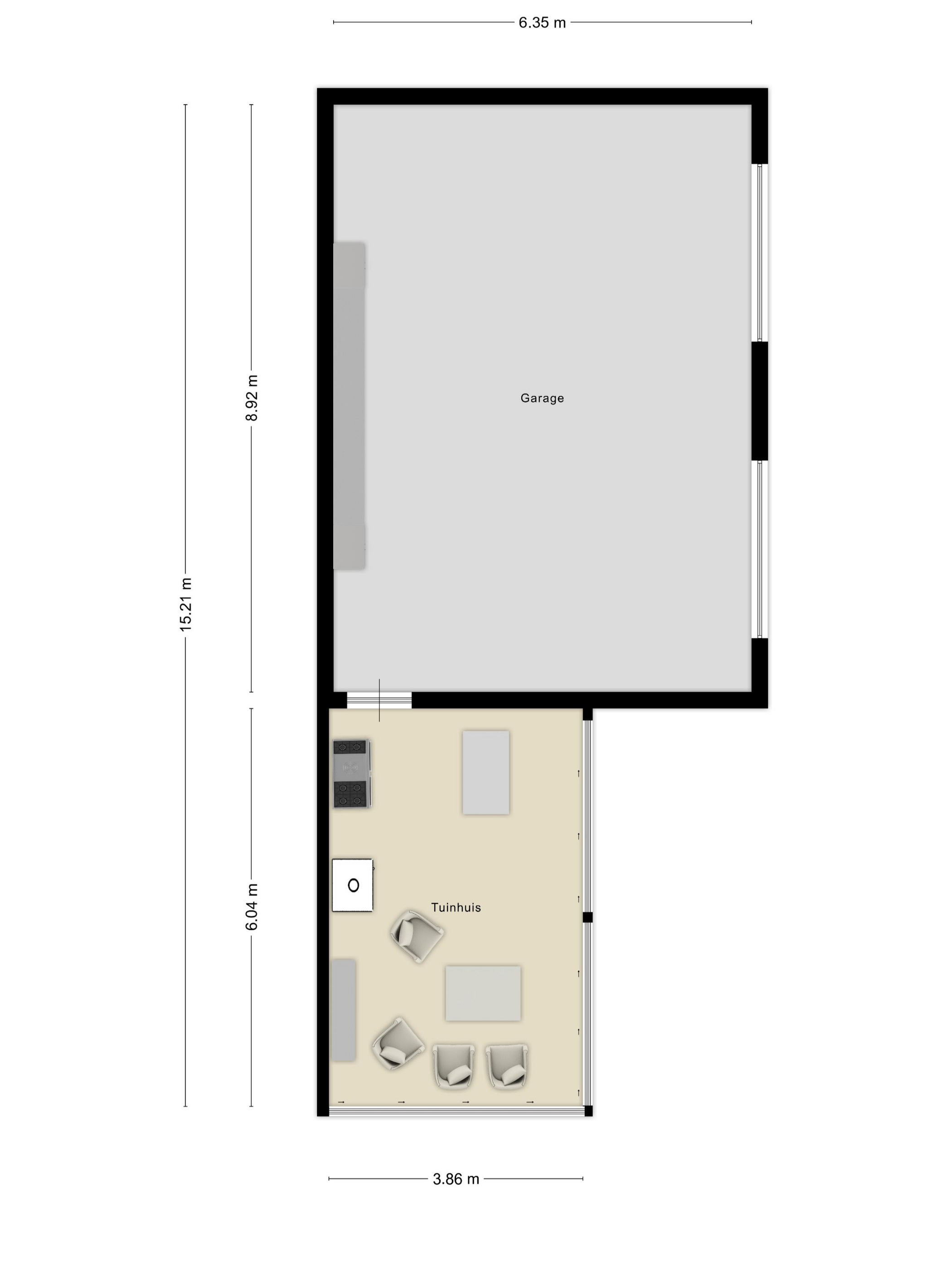 Vrijstaande en geïsoleerde garage / schuur met een 2-tal elektrische sectiedeuren, draadloze lichtschakelaars, tussengroepenkast met 4 groepen, 2 aardlekschakelaars en krachtstroom, 3-fase omvormer uit 2025 t.b.v. zonnepanelen, coating vloer, voorbereiding t.b.v. aansluiting water, 110 PVC afvoer voorbereid t.b.v. evt. toilet, separate loopdeur, muur-/, dak- en vloerisolatie.