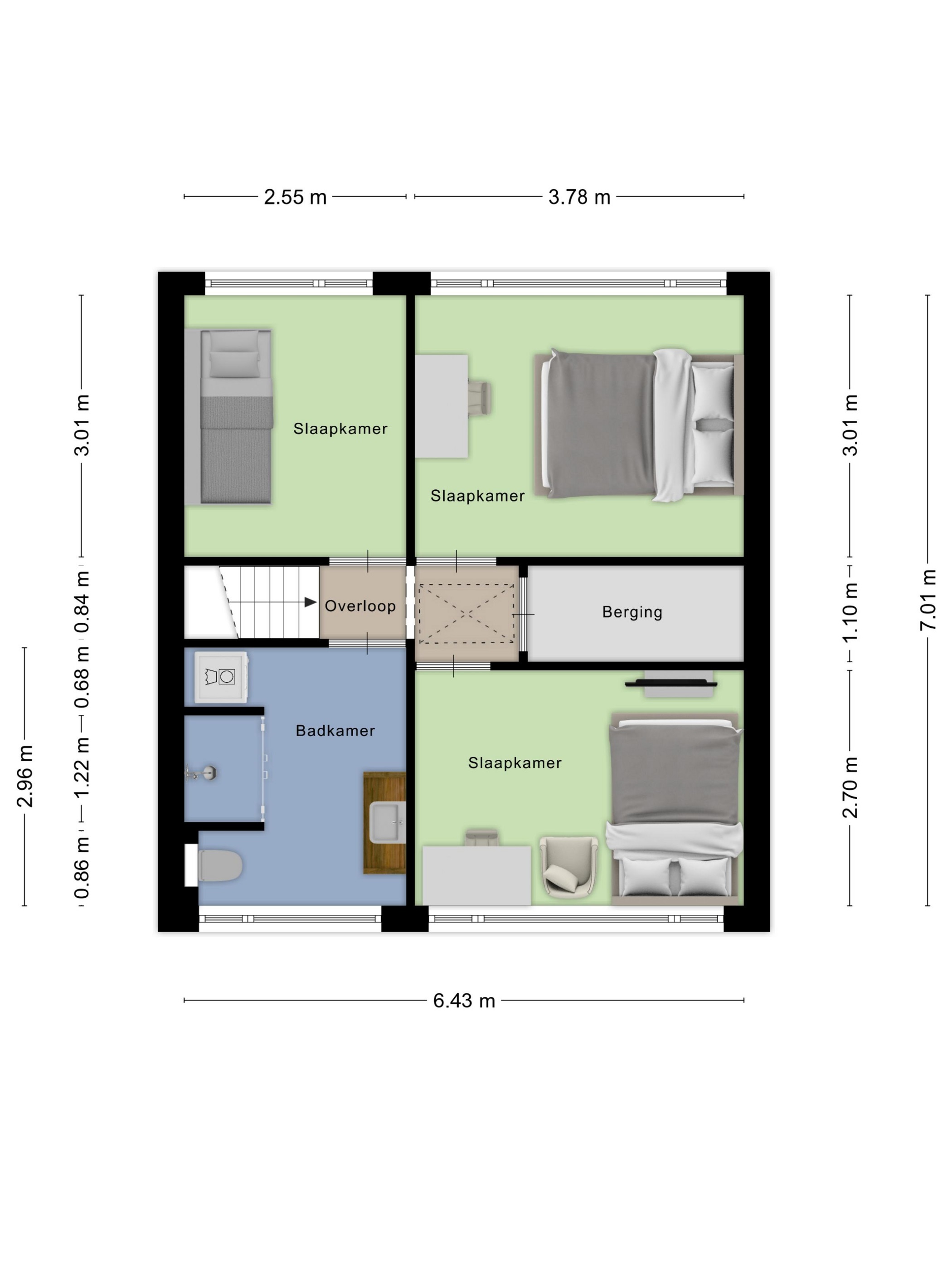 De grote raampartijen en praktische indeling bieden een ruimtelijke sfeer. Reeds zijn een 3-tal slaapkamers aanwezig en bestaat de mogelijkheid om, door middel van het plaatsen van een vaste trap, een extra slaapkamer op de zolder te realiseren. De badkamer is daarbij niet alleen 100% nieuw, maar ook heerlijk ruim en zo ook voorzien van een 2e toilet.