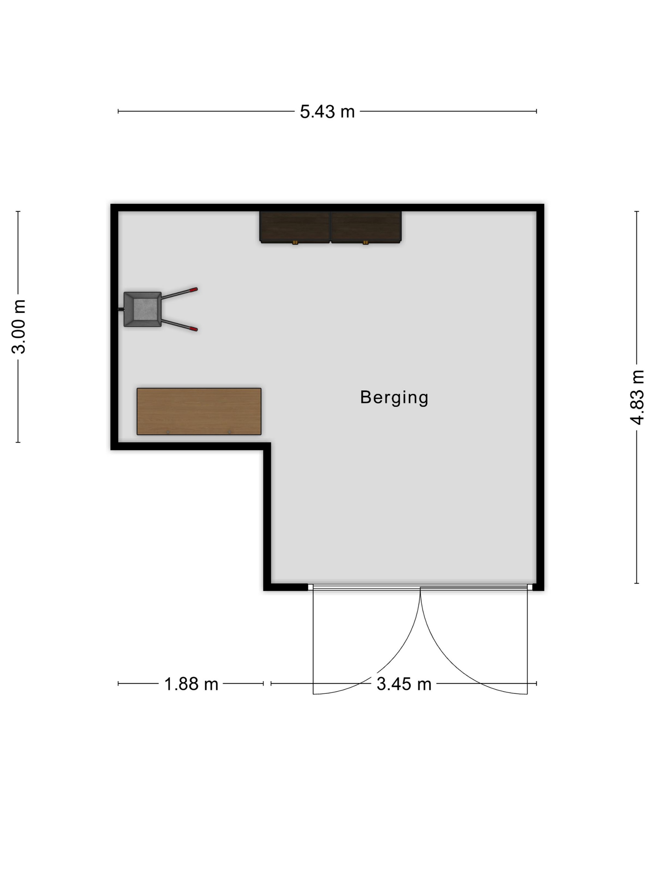 Traditioneel opgebouwd d.m.v. stalen wandprofielen, betontegelvloer, platdakconstructie gedekt met EPDM.