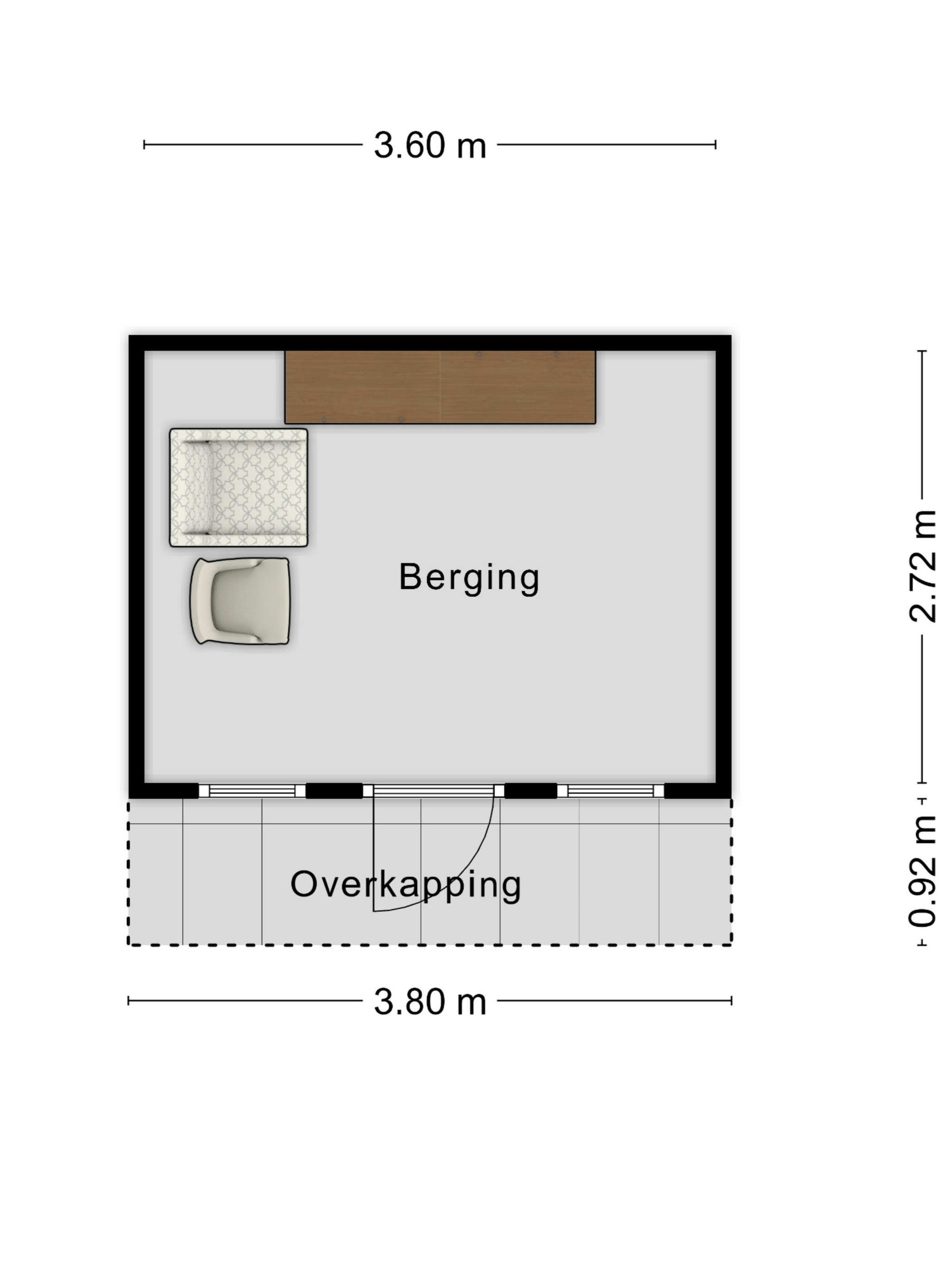 berging ll achterin tuin, voorzien van openslaande deuren;
