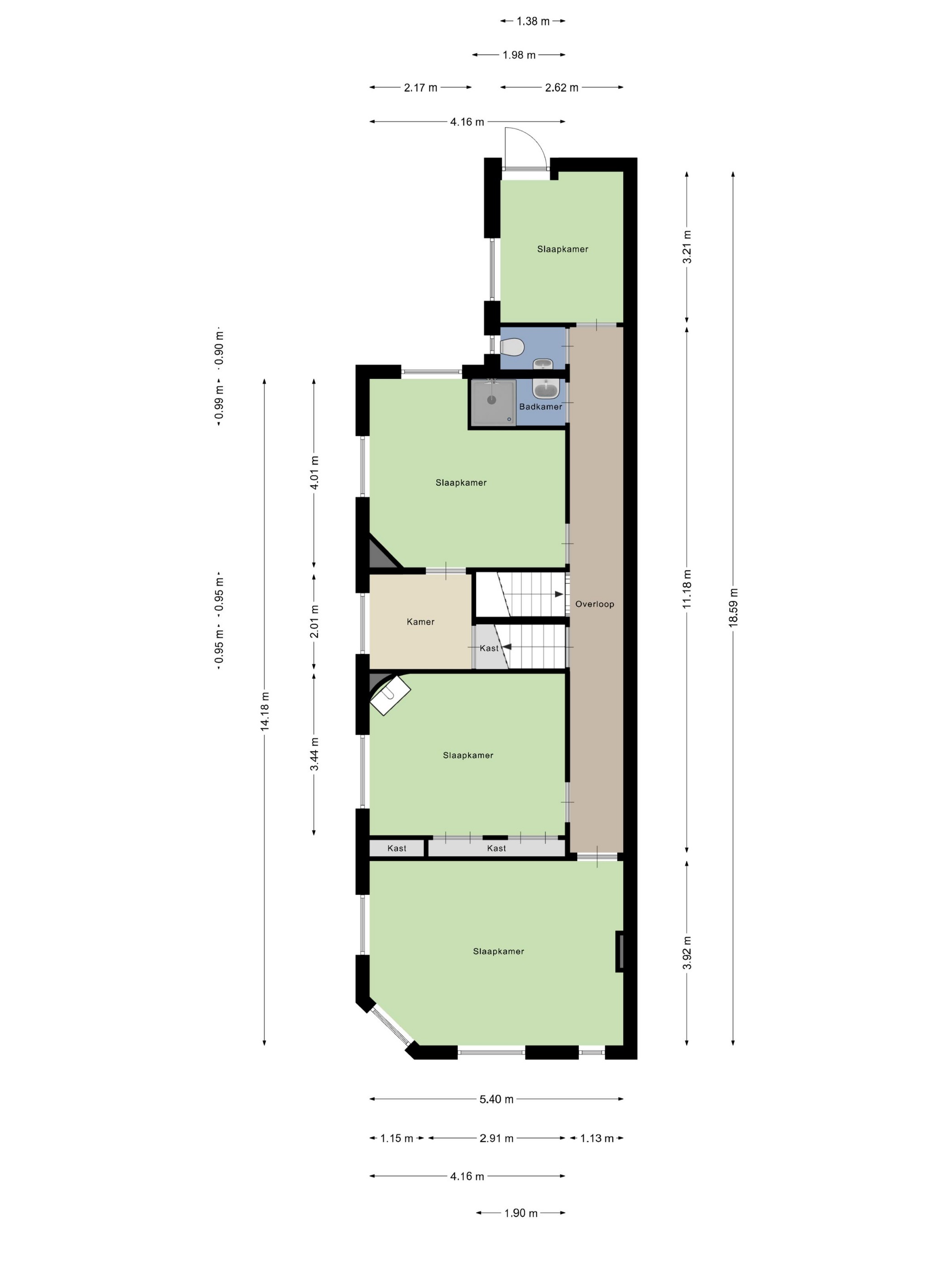 Overloop en 4 slaapkamers waarvan 1x voorzien van een inloopkast, wandafwerkingen behang en stucwerk, stucwerk plafonds, tapijtvloeren;