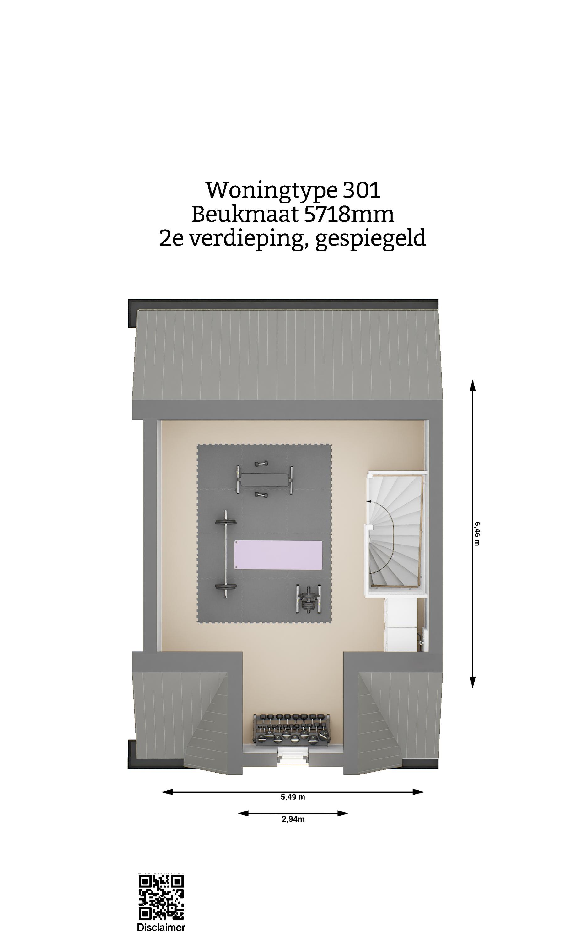 Ga je nog een verdieping hoger dan kom je in de flinke open ruimte, die je geheel naar eigen inzicht kunt indelen. Bijvoorbeeld als werk- of hobbykamer, (extra) slaapkamer of gewoon als zolder. Hier vind je ook de aansluitingen voor de wasmachine en droger. Het raam op de tweede verdieping zorgt voor daglicht. Bouwnummer 33, 34 en 37 zijn voorzien van een tuitgevel. Deze zorgt naast extra sfeer ook voor extra ruimte op de tweede verdieping.